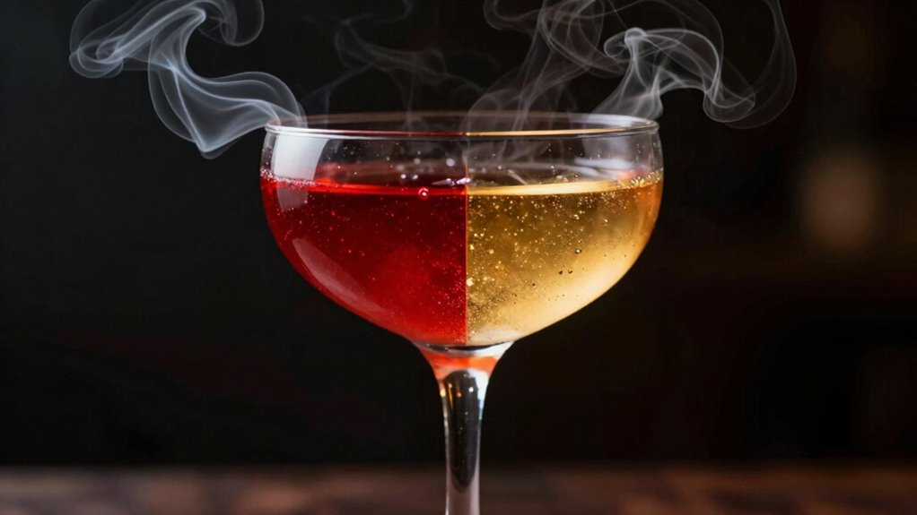 The split-base trick enhances your drink’s flavor profile by creating a richer, more complex taste. You’ll notice improved flavor enhancement as the two spirits blend, adding depth and nuance. It also helps with balance optimization, ensuring no single ingredient overpowers the others. This technique allows you to craft a more harmonious drink, making each sip more satisfying and enjoyable, highlighting the unique qualities of each spirit in perfect harmony.