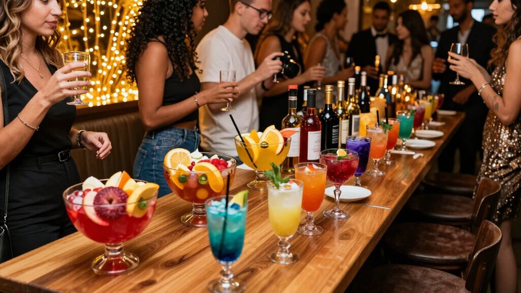 You immediately attract attention when your drinks look stunning, making your party more memorable. Choosing creative glassware and thoughtful garnishes adds personality and elegance to each glass. Small details like accents can turn simple drinks into eye-catching centerpiece moments that guests appreciate. Incorporating presentation techniques can elevate the overall dining experience and leave a lasting impression.