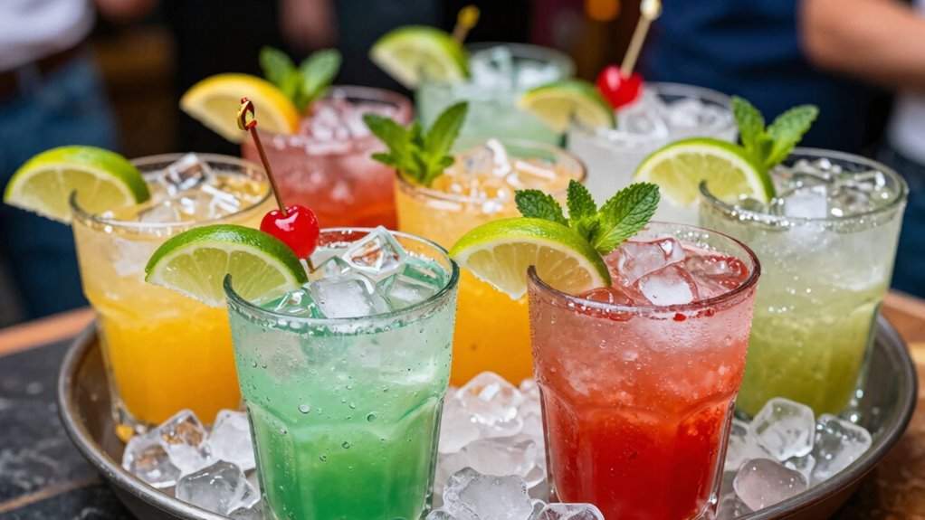 Choosing the right ice is essential for maintaining the perfect temperature and consistency in your batch drinks. Ice spheres melt slowly, keeping your cocktail cold longer without watering it down. They’re ideal for presentations and when serving in large glasses. Crushed ice chills drinks quickly and is perfect if you want rapid cooling or a slushy texture. Consider your drink’s style and serving method when selecting ice. Incorporating hydration as a key factor can further enhance the overall enjoyment of your cocktails. Additionally, understanding surface finishes can elevate the visual appeal of your drinks, making them more enticing. Staying aware of heatstroke signs is also crucial, especially during outdoor gatherings where cocktails are served. To ensure optimal enjoyment, consider using water-cooled mattress pads to maintain a comfortable environment while serving your drinks. Furthermore, using bike generators can help you produce renewable energy for powering outdoor equipment during your gatherings.