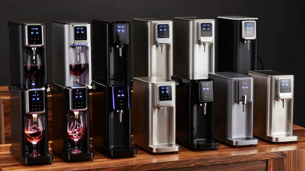 I’ve checked out the top electric wine aerators and dispensers for 2026, and they combine smart features like automatic pressure control, rapid oxygenation, and sleek designs. Whether you want a compact rechargeable model, a multi-function 4-in-1 device, or one with touchscreen control, there’s something for every wine lover. If you want to find out which one suits your needs best, keep exploring—there’s plenty more to discover.