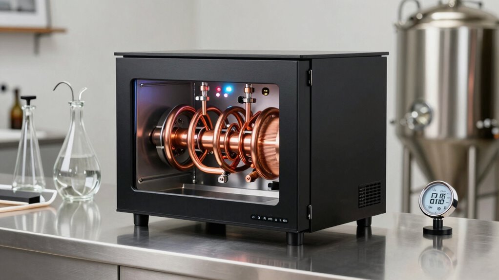 Choosing the right glycol chiller can truly elevate your homebrewing game. Did you know that proper temperature control can improve beer clarity and flavor by up to 30%? With options like stainless steel coils and advanced temperature regulation, you’re equipped to craft professional-quality brews at home. Whichever model fits your needs, investing in a quality chiller guarantees consistent results and great-tasting beer every time. Cheers to brewing perfection!