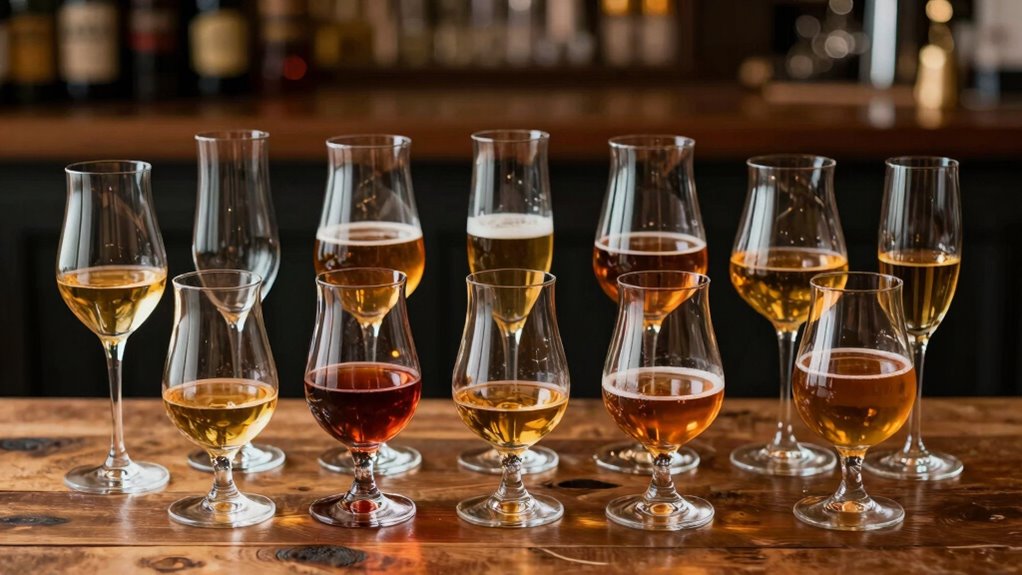 Choosing the right IPA glass shape can significantly elevate your beer tasting experience because the design influences how aromas and flavors are released and perceived. A tapered or tulip-shaped glass concentrates aromatic compounds, making the hop and malt nuances more vivid. A wider bowl allows better aeration, releasing complex hop aromas and enhancing flavor profiles. Narrower rims focus the aroma toward your nose, heightening sensory enjoyment. Many IPA glasses feature textured or nucleated bases that promote bubble formation and carbonation, adding to the overall experience. Additionally, the shape can influence how you perceive hop bitterness and malt sweetness, helping to balance and highlight specific elements of the beer. Overall, the right shape ensures you get the most out of every sip.
