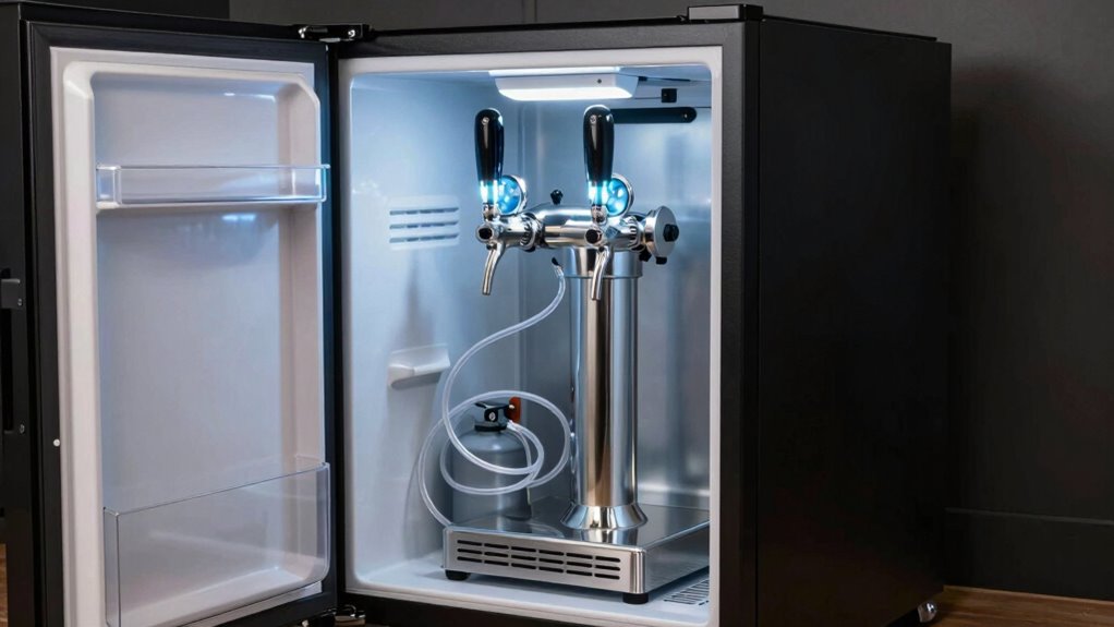 In wrapping up, choosing the right kegerator conversion kit is like finding the perfect compass for your mini fridge adventure. With options ranging from no-tank setups to multi-tap towers, you can customize your brew experience effortlessly. Remember, even in a world of modern tech, simplicity and quality still reign supreme—like a trusty steed guiding you through the craft beer kingdom. So, pick your kit wisely and enjoy the frothy journey ahead!
