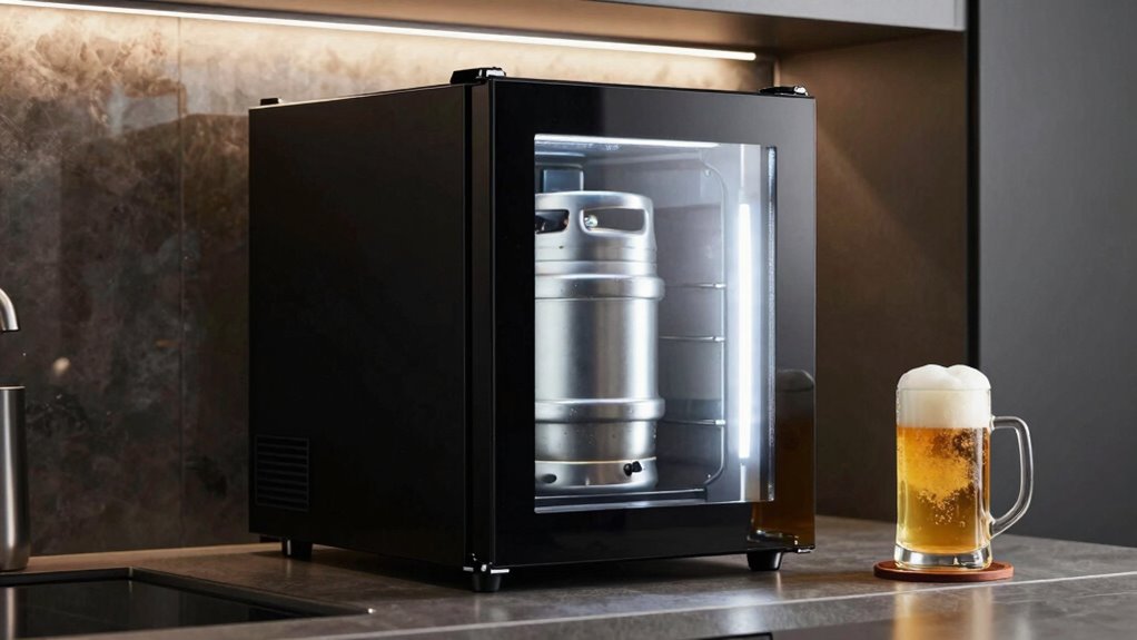 Imagine your perfect draft setup as a finely tuned orchestra, each component playing its part in harmony. Choosing the right kegerator for your slim quarter keg is like selecting the perfect instrument—ensuring smooth, crisp pours every time. With the right gear, your home bar transforms into a lively concert of flavors and freshness. So, pick wisely, and let your beer experience be a symphony worth savoring. Cheers to your perfect pour!