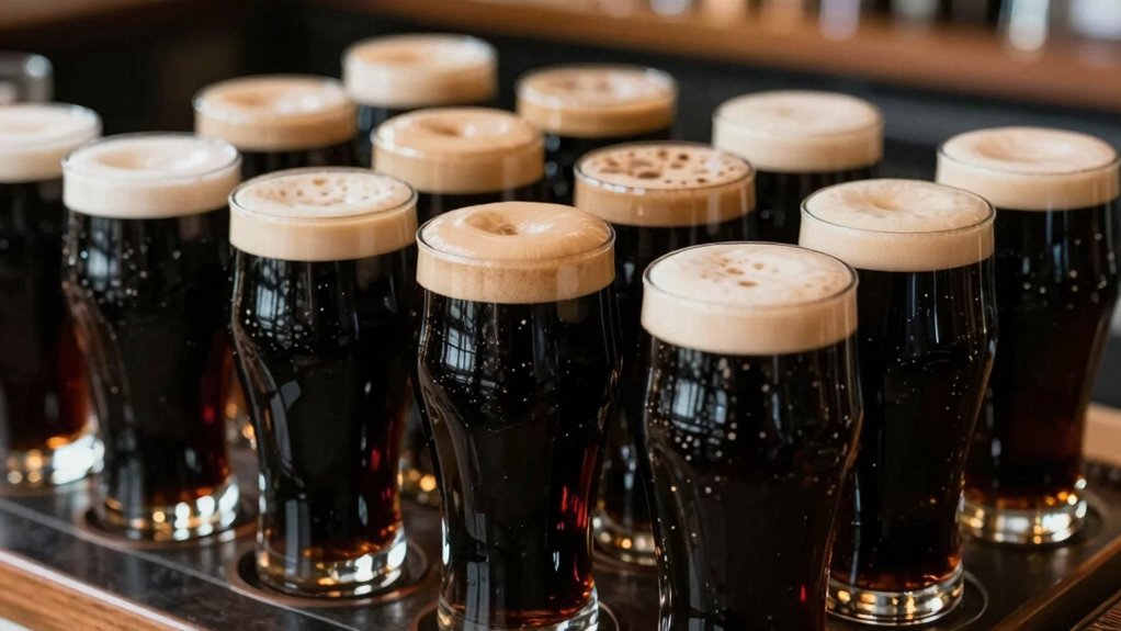 Choosing the right stout glass transforms your brew from ordinary to extraordinary—like swapping a simple mug for a crystal goblet. It’s about balancing practicality with elegance, much like pairing a hearty stout with a delicate chocolate garnish. Whether you prefer a classic pint or a specialized tulip, each glass elevates your experience, making every sip feel like a special occasion. After all, your beer deserves a vessel as memorable as its flavor.