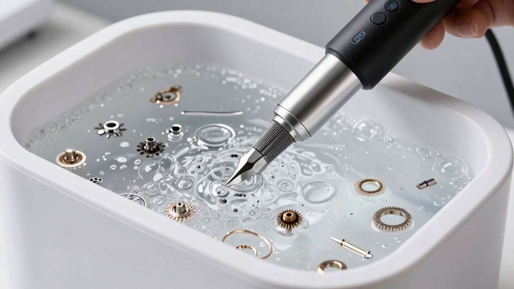 I recommend servicing your ultrasonic cleaner every 3 to 6 months, depending on usage frequency. Regular maintenance includes inspecting the transducers, cleaning the tank, and checking for corrosion or wear. I also suggest replacing the solution regularly to guarantee peak cleaning performance. Staying consistent with these routines helps prevent breakdowns, extends the device’s lifespan, and keeps your small bar parts thoroughly clean and safe to use.
